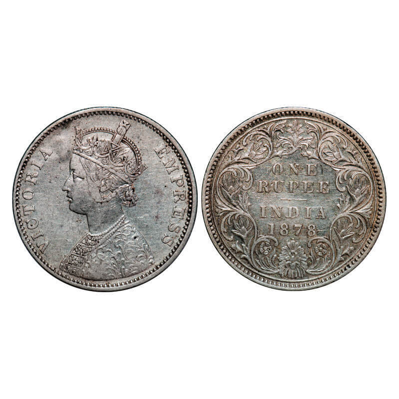 Victoria Empress, Silver, Rupee, 1878, Calcutta Mint, A1/I, No mint mark. GK 455, F. Prid 116. Almo...