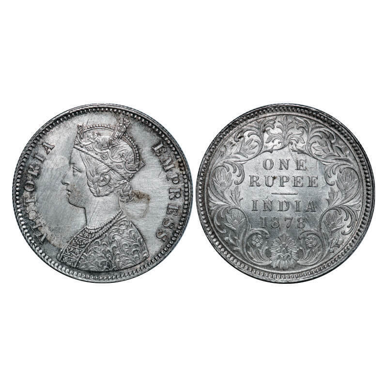 Victoria Empress, Silver, Rupee, 1878, Calcutta Mint, A1/I, No mint mark. GK 455, F. Prid 116. Almost Uncirculated. Scarce.