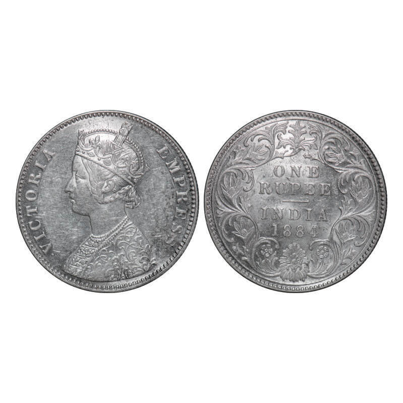 Victoria Empress, Silver, Rupee, 1884, Bombay Mint, A3/I, 'B' raised. GK 489, F. Prid 167. About Uncirculated. Scarce.