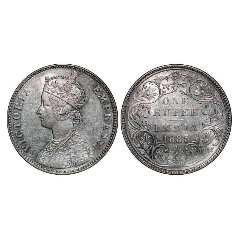 Victoria Empress, Silver, Rupee, 1885, Calcutta Mint, A1/I, 'C' incused, Top stroke of numeral 5 sh...