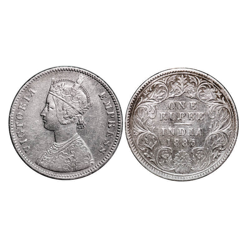 Victoria Empress, Silver, Rupee, 1885, Calcutta Mint, A1/I, 'C' incused, Top stroke of numeral 5 short. GK 518, F. Prid 124. Very Fine+, Cleaned. Scarce.