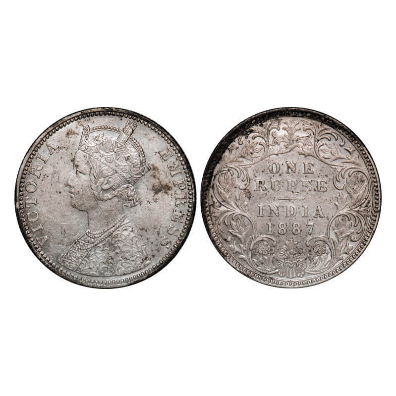 Victoria Empress, Silver, Rupee, 1887, Bombay Mint, C2/I(ii), 'B' raised. GK 533, F. Prid 172. Extremely Fine+, Details. Very Scarce.
