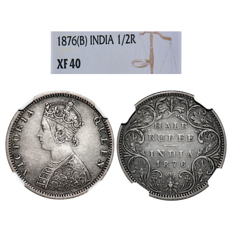 Victoria Queen, Silver, Half Rupee, 1876, Bombay Mint, B2/II, Dot. GK 606, F. Prid 287. NGC Slabbed XF 40. Scarce.