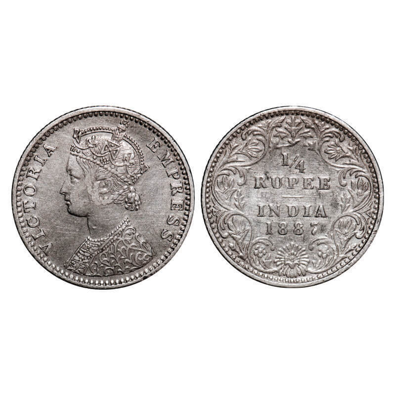 Victoria Empress, Silver, 1/4 Rupee, 1887, Bombay Mint, C(i)/II, 'B' raised. GK 708. Very Fine+. Scarce.