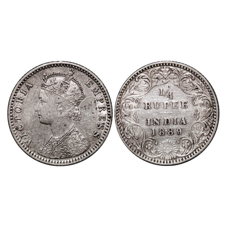 Victoria Empress, Silver, 1/4 Rupee, 1889, Bombay Mint, C(i)/II, 'B' incused. GK 715. Very Fine+. Scarce.