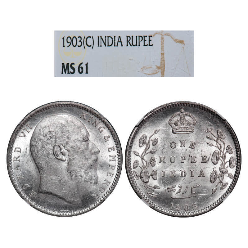 Edward VII, Silver, Rupee, 1903, Calcutta Mint, No mint mark, Normal 5 diamonds. GK 924, F. Prid 189 . NGC Slabbed MS 61. Very Scarce.
