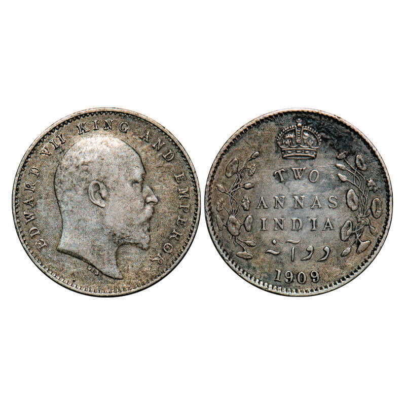 Edward VII, Silver, 2 Annas, 1909, Calcutta Mint, No mint mark. GK 986, F. Prid 562. Extremely Fine. Very Scarce.