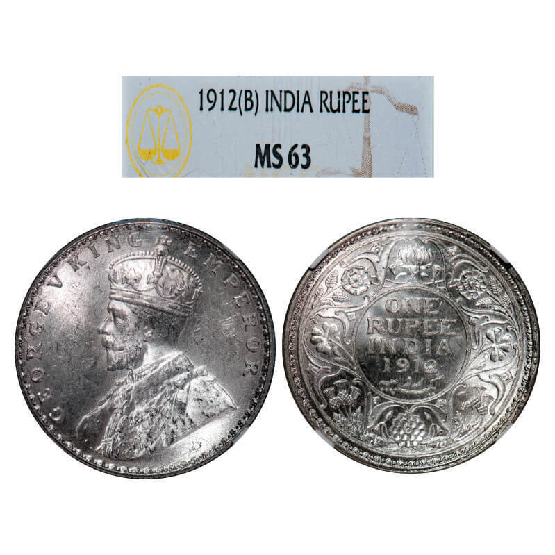 George V, Silver, Rupee, 1912, Bombay Mint, Dot. GK 1026, F. Prid 218. NGC Slabbed MS 63. Rare.