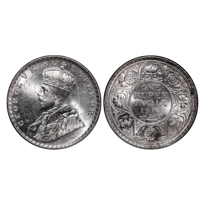George V, Silver, Rupee, 1916, Bombay Mint, Dot. GK 1034, F. Prid 222. Mint State. Very Scarce.