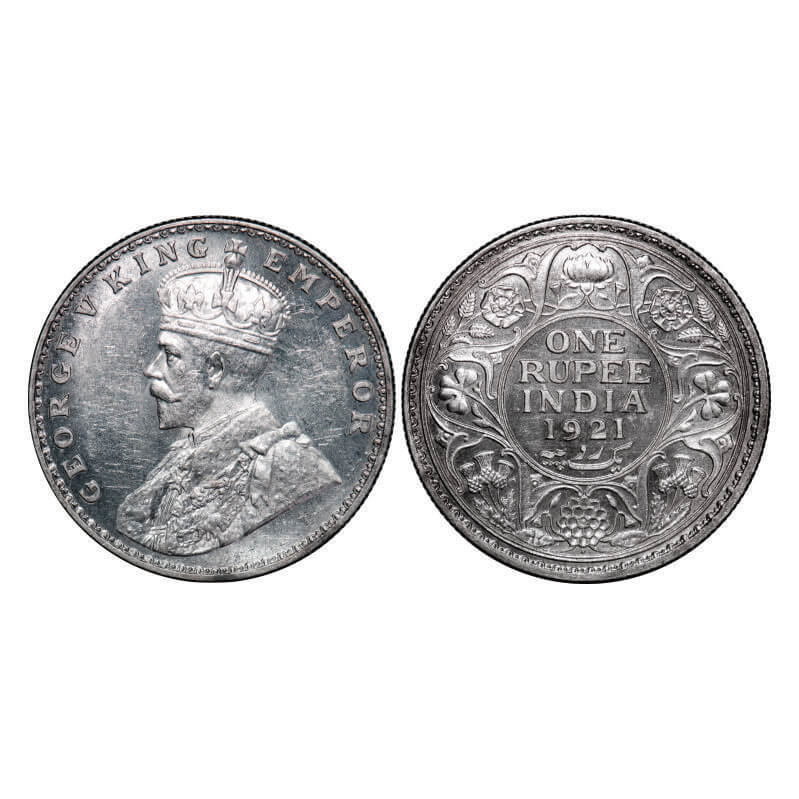 George V, Silver, Rupee, 1921, Bombay Mint, Dot. GK 1043, F. Prid 227. Uncirculated. Very Scarce.