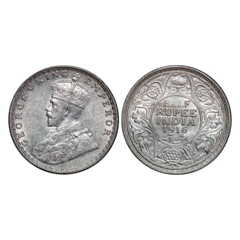 George V, Silver, Half Rupee, 1916, Bombay Mint, Dot. GK 1054, F. Prid 340. About Uncirculated. Scarce.