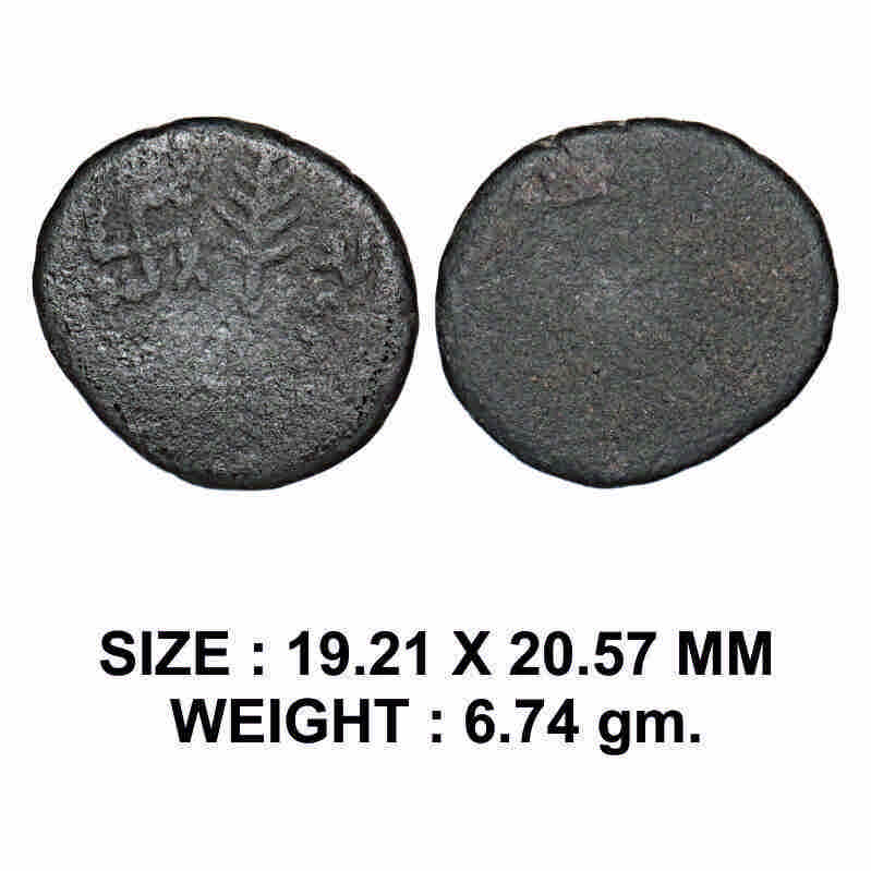Tribal Janapada, Sibi Janapada (c. 200 BC), Copper Unit, 6.74g, Obv: Multi-branched tree beside swastika symbol taurine on each corner of swasitka and traces of Brahmi legend '….dasa', Rev: Worn out. D. Handa, type II. Fine+, Rare.
