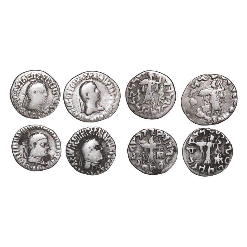 Indo-Greeks, Apollodotos II (c. 85-60 BC), Silver Drachma (4 coins), Obv: Bust of king, Greek legend around, Rev: Athena thundering to right, around Kharosthi legend. Bopearachchi & Rahman 647. About Very Fine, Scarce.