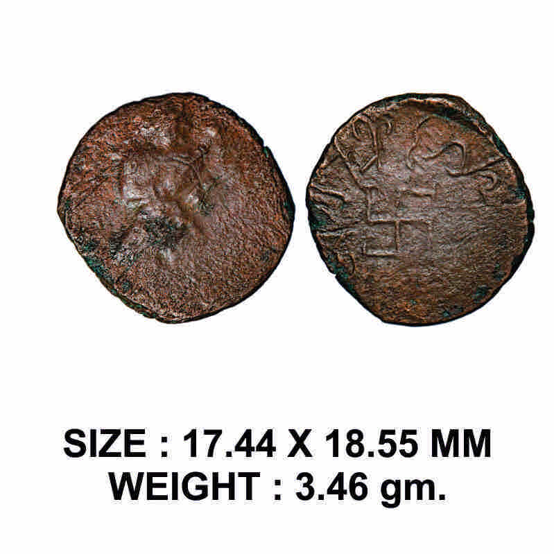 | Paratarajas, Koziya (BC 270-230), Copper Drachma, 3.46g, Obv: King standing right, holding scepter around traces of Brahmi legend, Rev: Swastika turning right, with Kharoshthi legend around. P. Tandon JONS 204. About Very Fine, Scarce. |