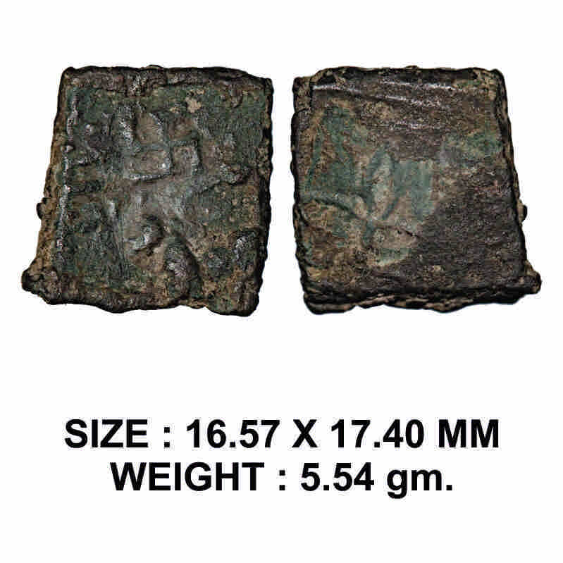 | Satavahanas, Siri Satakarni, Nasik Region, Lion type, Copper, 4.26g, Obv: Lion walking to left side with curved tail above bold swastika symbol and on top trac es of Brahmi legend, Rev: Tree-in-railing. I.K. Sharma, pl. VIII. About Very Fine, Scarce. |