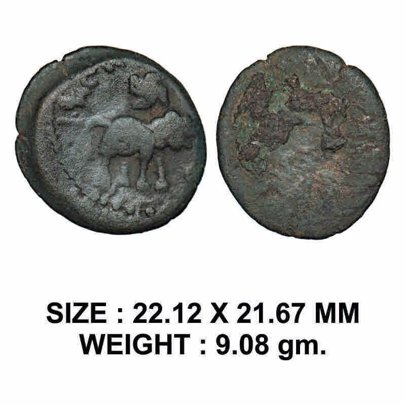 | Satavahanas, Siri Satakarni, Nasik Region, Elephant type, Copper Unit, 9.08g, Obv: Elephant walking to right side above swastika symbol and around Brahmi legend 'Rajno Siriā¦, Rev: Worn out. Unlisted in I.K. Sharma. About Very Fine, Scarce. |