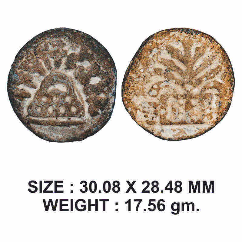 Kuras of Kolhapur, Gautimputra Vilivayakura, Lead Unit, 10.69g, Obv: Bow and arrow in centre around...