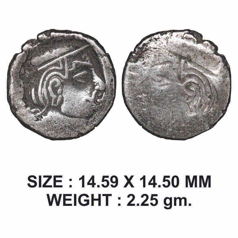 Western Kshatrapas, Rudrasena II, Silver Drachma, 2.25g, Error, Obverse Brockage, nice deep and complete Lakhi impression on rev. About Very Fine, Scarce.