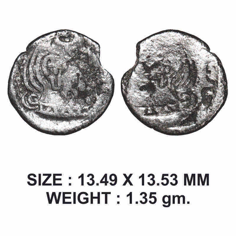 Western Kshatrapas, Silver Drachma, 1.35g, Error, Obverse Brockage, nice deep and complete Lakhi impression on rev. Fine+, Scarce.
