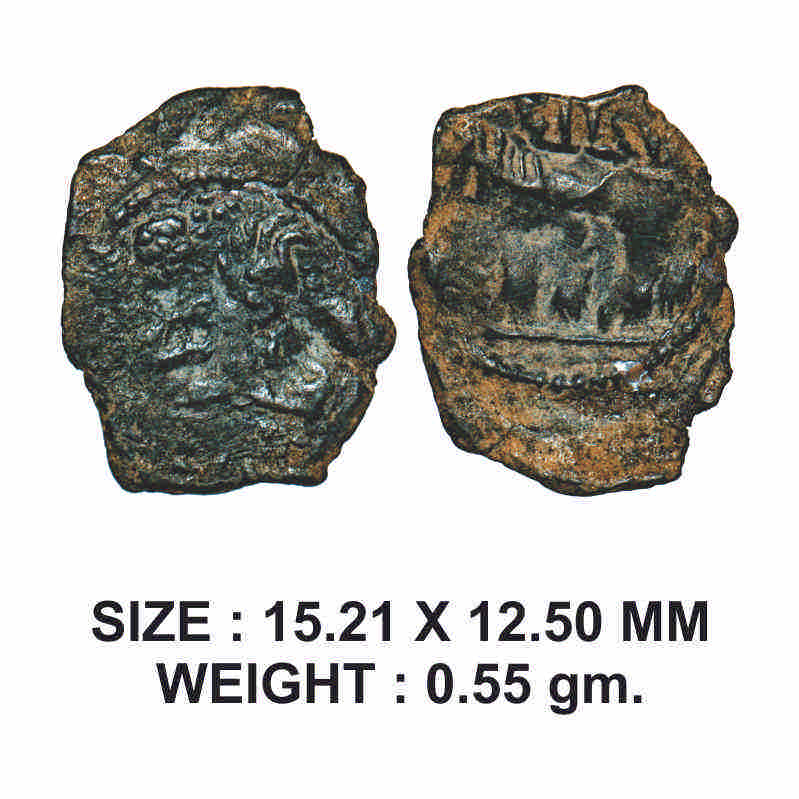 Hunnic issue, Kashmir Smast, Copper unit. 0.50g, Both side Brahmi letters. About Very Fine, Scarce....