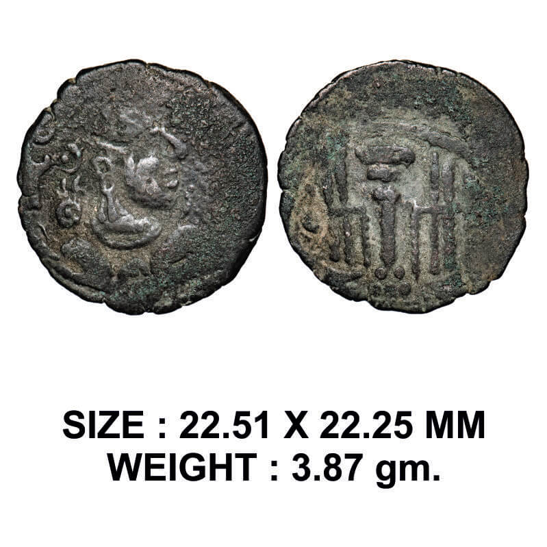 Indo-Sassanian, Rajashtan Area, Silver Drachma, 3.87g, Obv: Crowned profile bust of king facing to right side, Rev: Fire altar. About Very Fine, Scarce.