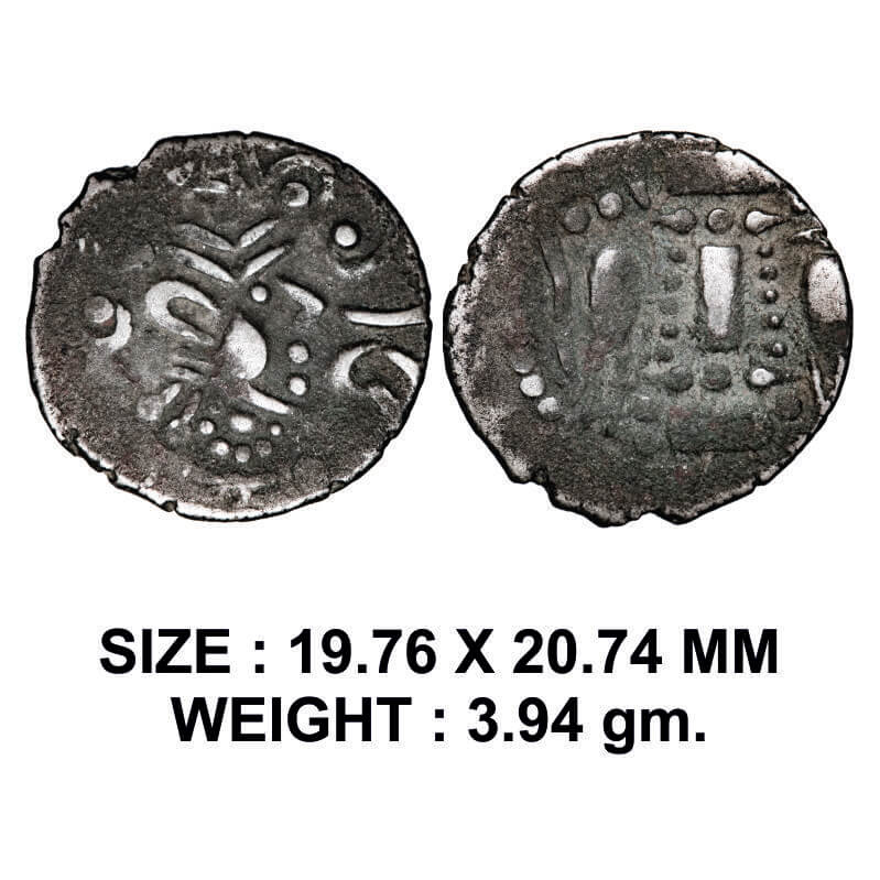Indo-Sassanian, Rajashtan Area, Silver Drachma, 3.94g, Obv: Crowned profile bust of king facing to right side, Rev: Fire altar. About Very Fine, Scarce.