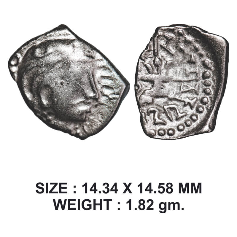 Traikutakas, Dharasena (c. 300-350 AD), Silver Drachma, 1.91g, Obv: Profile bust of king facing to ...