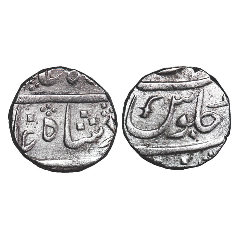 Baroda, Silver Rupee, 11.26g, Fatah Singh Regent (AH 1192-1204 / 1778-1789 AD), Sankheda Mint, INO Shah Alam II, scimitar on reverse. KM Unlisted. Very Fine, Very Scarce.