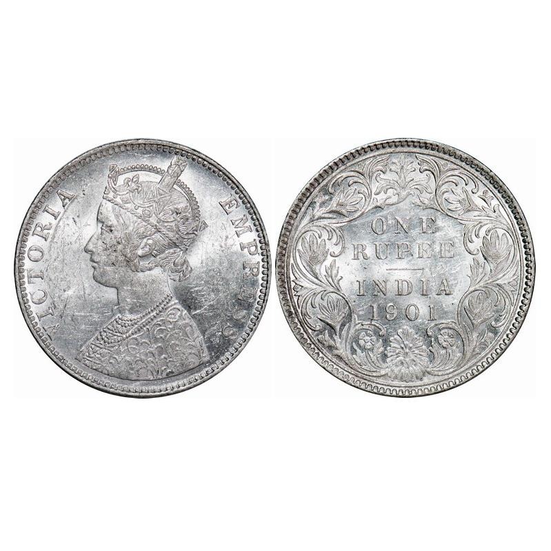 Victoria Empress, Silver, Rupee, 1901, Calcutta Mint, C3/I(i), 'C' incused, Both numeral 1 of year ...