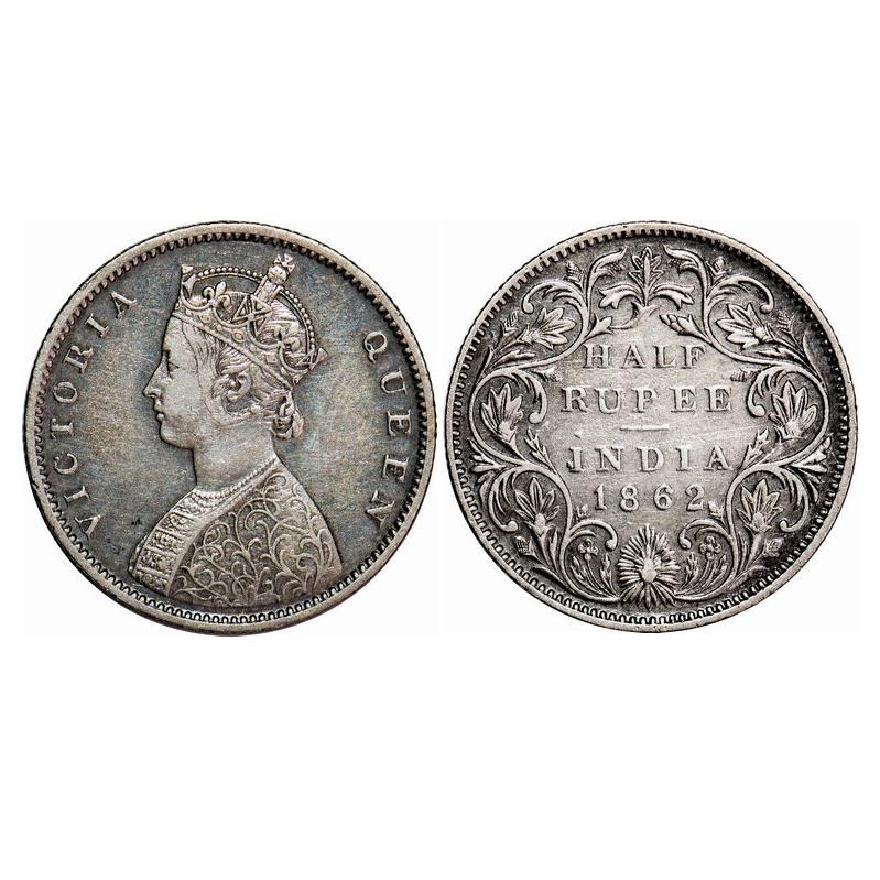 Victoria Queen, Silver, Half Rupee, 1862, Bombay Mint, B1/II. F. Prid 258. GK 371. Very Fine+. Scarce.