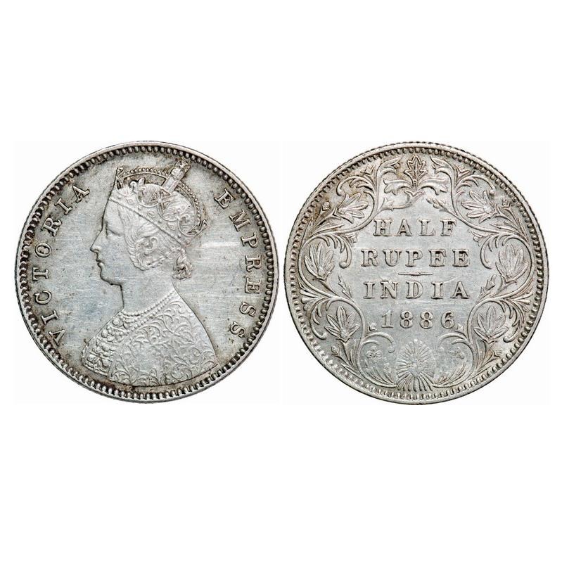 Victoria Empress, Silver, Half Rupee, 1886, Bombay Mint, A/II(i), 'B' raised. F. Prid 295. GK 633. Extremely Fine+. Rare.