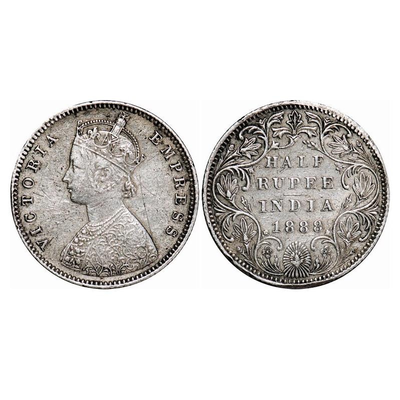 Victoria Empress, Silver, Half Rupee, 1888, Bombay Mint, A/II(i), 'B' raised. F. Prid 298. GK 640. Very Fine+. Very Scarce.