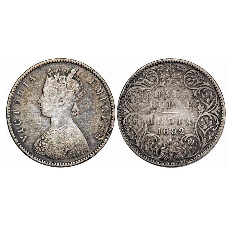 Victoria Empress, Silver, Half Rupee, 1892, Bombay Mint, A/I, 'B' incused. F. Prid 302. GK 646. Fine+. Scarce.
