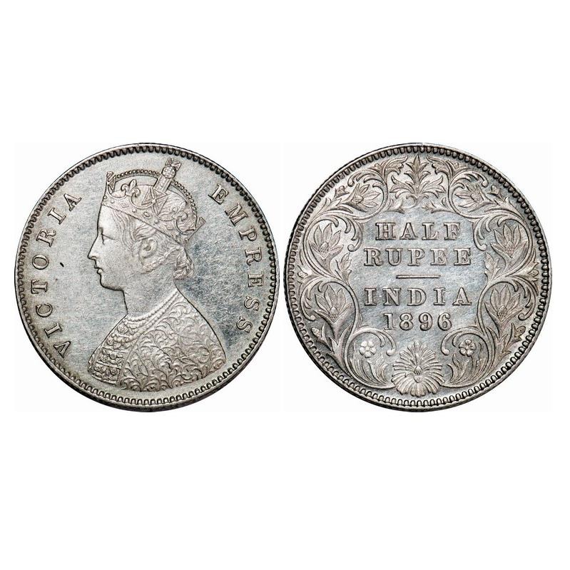 Victoria Empress, Silver, Half Rupee, 1896, Calcutta Mint, A/I, 'C' incused. F. Prid 279. GK 652. Extremely Fine. Scarce.
