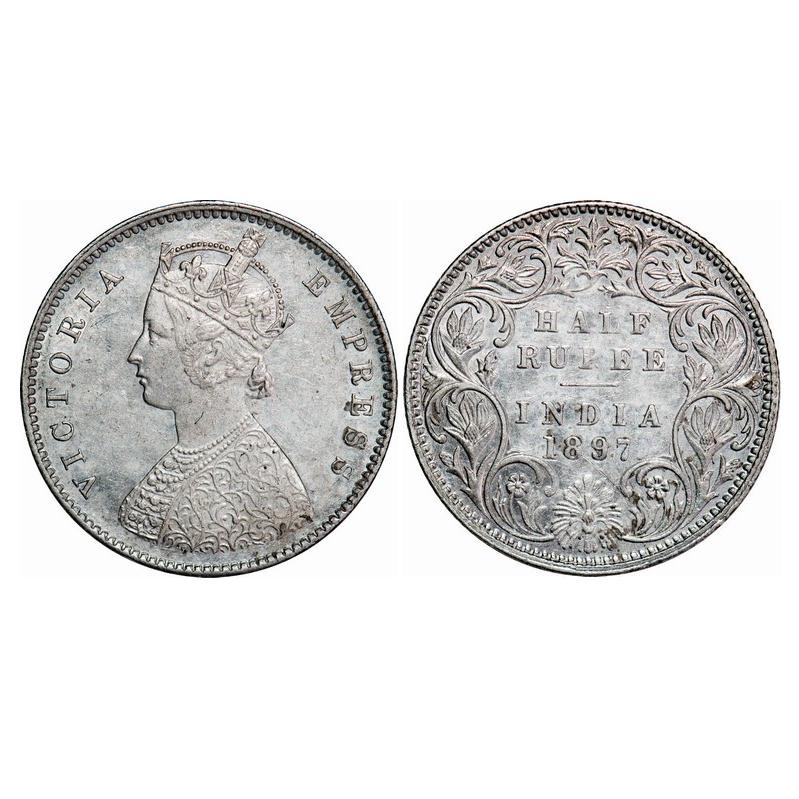 Victoria Empress, Silver, Half Rupee, 1897, Bombay Mint, A/I, 'B' incused, Scratches on Rev. F. Prid 305. GK 655. Extremely Fine+, Details. Rare. |