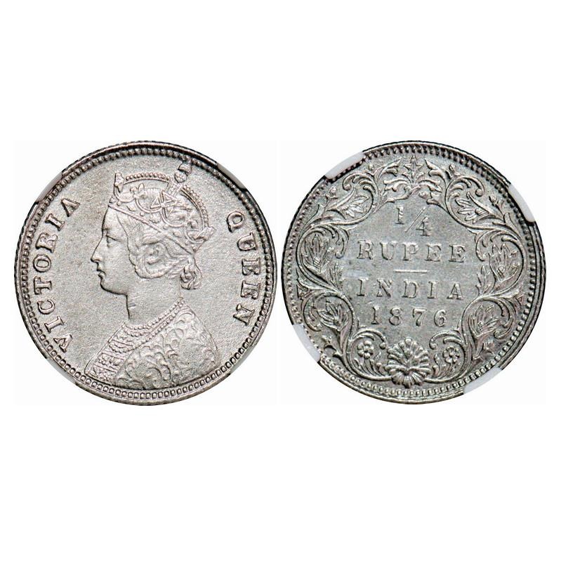 Victoria Queen, Silver, 1/4 Rupee, 1876, Calcutta Mint, A/I, No mint mark, No 'C'. F. Prid 381. GK 669. NGC Slabbed AU Details, Cleaned. Scarce. |