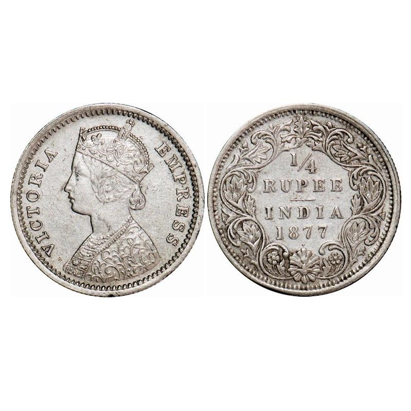 Victoria Empress, Silver, 1/4 Rupee, 1877, Bombay Mint, B/I, Dot. F. Prid 409. GK 671. Extremely Fine+. Scarce.