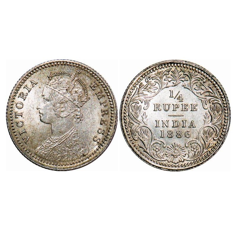 Victoria Empress, Silver, 1/4 Rupee, 1886, Calcutta Mint, C/II, 'C' incused. F. Prid 391. GK 707. About Uncirculated. Very Scarce.