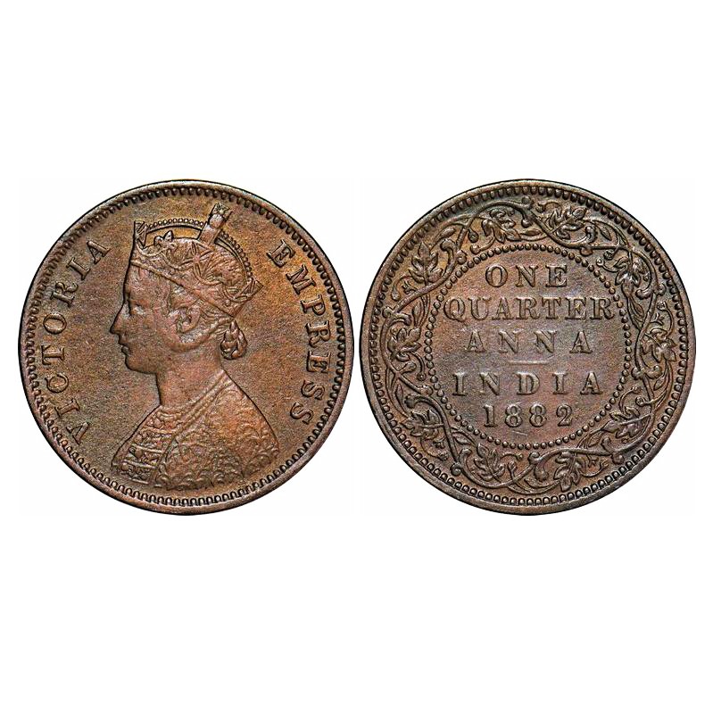 Victoria Empress, Copper, Quarter Anna, 1882, Calcutta Mint, B/II, 'C' incused. F. Prid 615. GK 835...