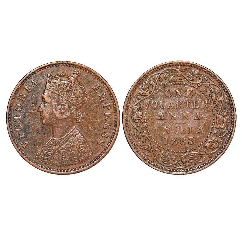 Victoria Empress, Copper, Quarter Anna, 1883, Calcutta Mint, B/II, 'C' incused. F. Prid 616. GK 837...