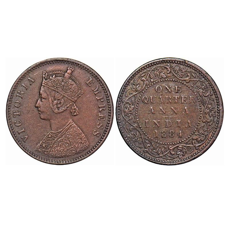 Victoria Empress, Copper, Quarter Anna, 1884, Calcutta Mint, B/I, No mint mark. F. Prid 640. GK 838...