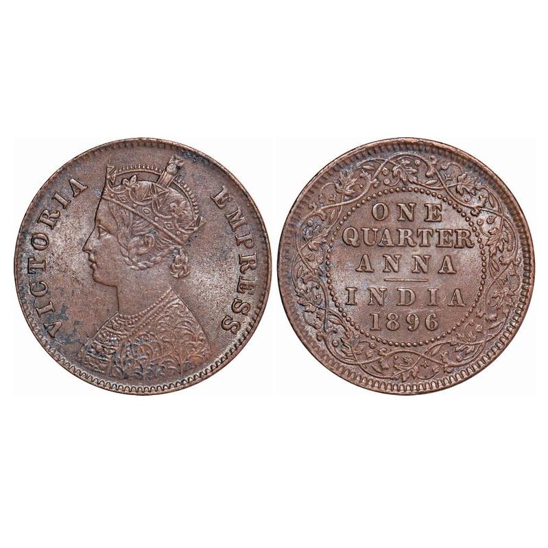 Victoria Empress, Copper, Quarter Anna, 1896, Calcutta Mint, B/II, No mint mark. F. Prid 629. GK 855. Uncirculated. Very Scarce.
