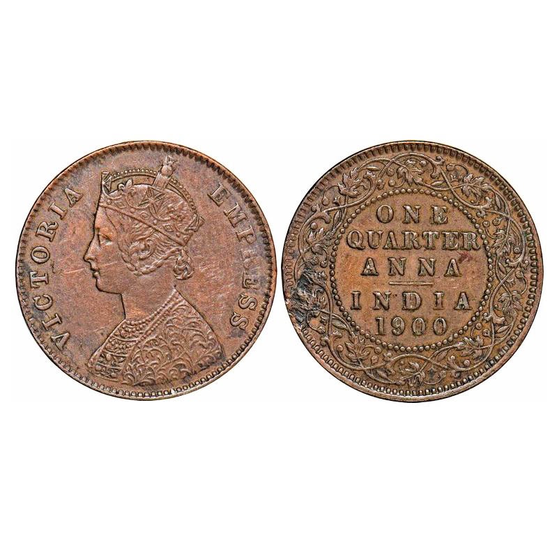 Victoria Empress, Copper, Quarter Anna, 1900, Calcutta Mint, B/II, No mint mark. F. Prid 633. GK 859. Extremely Fine. Scarce.
