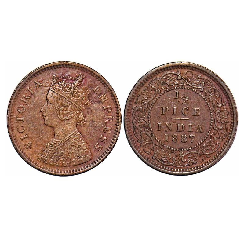Victoria Empress, Copper, 1/2 Pice, (Lot of 5 coins), 1887, 1892, 1893, 1894, 1896, Calcutta Mint, ...