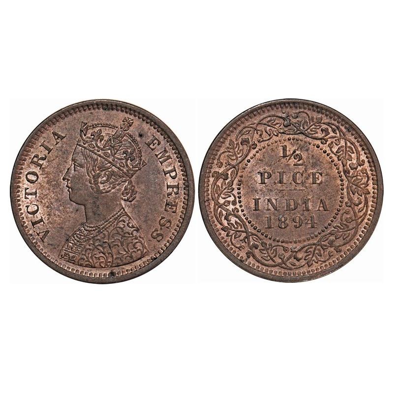 Victoria Empress, Copper, 1/2 Pice, 1894, Calcutta Mint, A/I, No mint mark, Ghost on Rev. F. Prid 7...