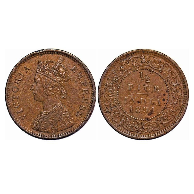 Victoria Empress, Copper, 1/2 Pice, 1890, Calcutta Mint, A/I, No mint mark. F. Prid 722. GK 870. NG...
