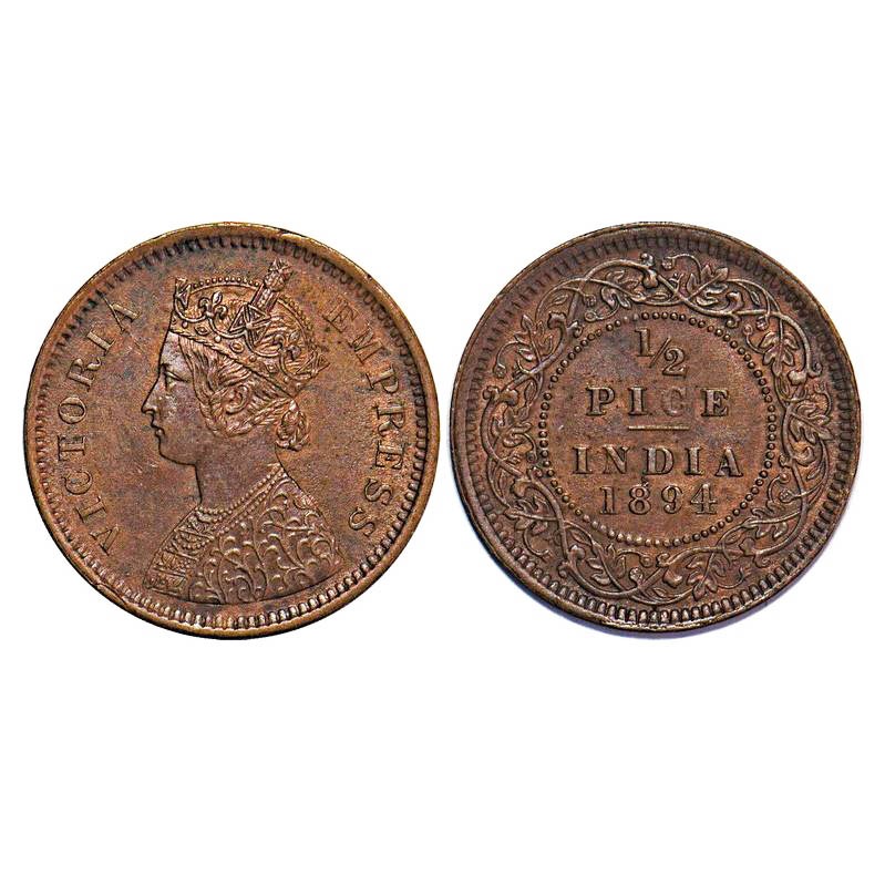 Victoria Empress, Copper, 1/2 Pice, 1894, Calcutta Mint, A/I, No mint mark, Ghost on Rev. F. Prid 7...
