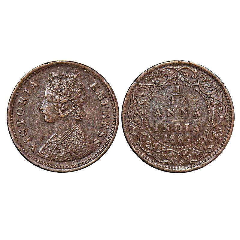 Victoria Empress, Copper, 1/12 Anna, 1887, Bombay Mint, Obv A, No mint mark. F. Prid 814. GK 904. Extremely Fine+. Very Scarce.