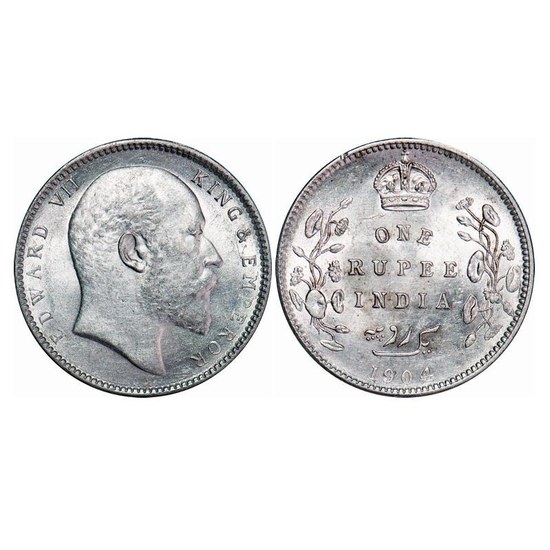 Edward VII, Silver, Rupee, 1904, Bombay Mint, 'B' incused and dot, 'H' mark on Rev rim edge. F. Prid. 191. GK 934. About Uncirculated. Scarce.