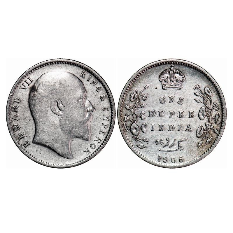 Edward VII, Silver, Rupee, 1905, Calcutta Mint, No mint mark. F. Prid 191. GK 934. Extremely Fine+. Scarce.